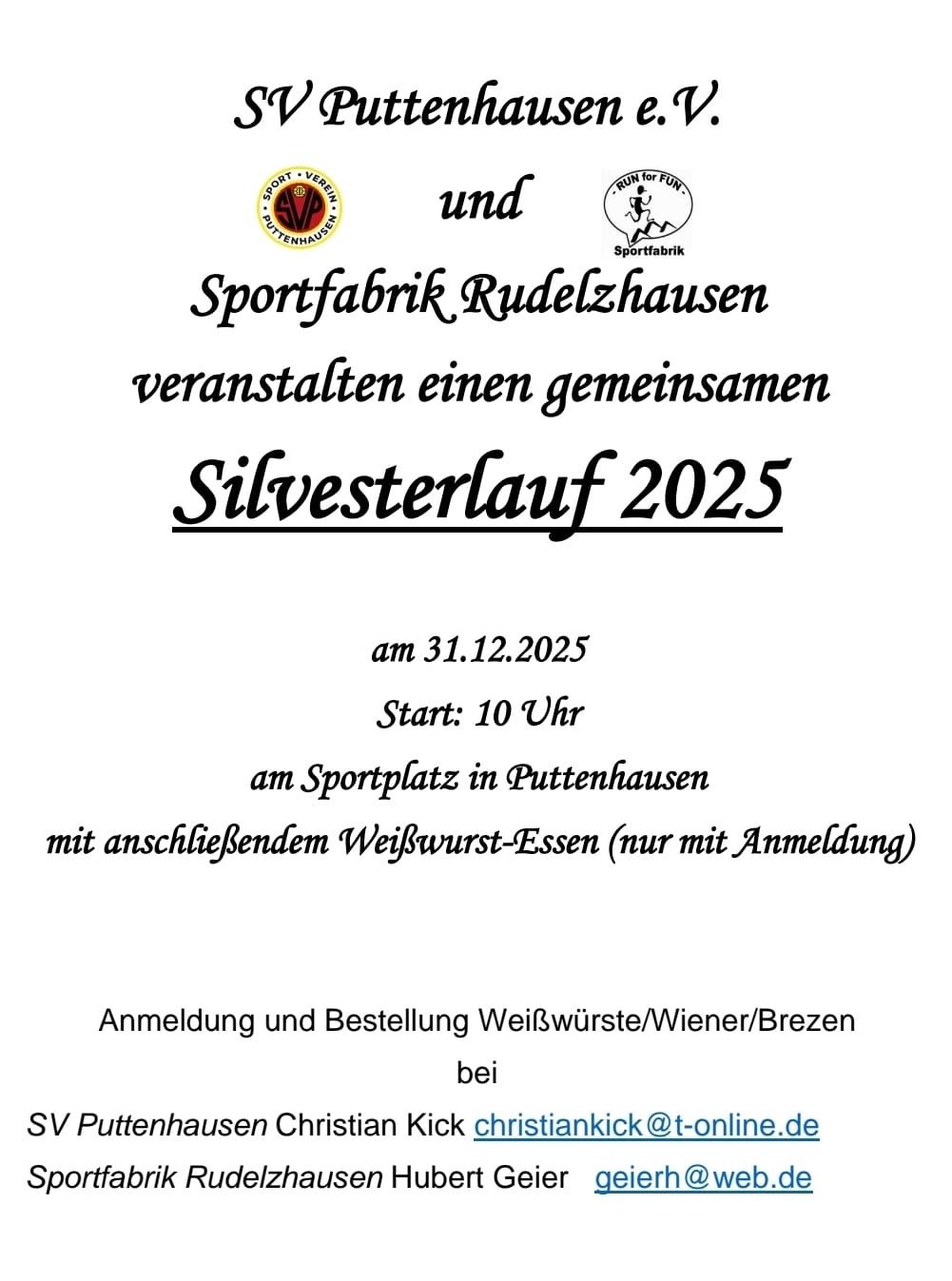Auch für den Silvesterlauf dürft ihr euch schon gerne anmelden – email an mich: wieviele Personen, wieviele Weißwürste, Wiener, Brezen: